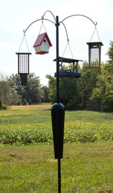 It’s a sturdy piece of equipment that will hold fairly heavy feeders, bird houses or plants. The lower pole segment has an attached auger that will screw into the ground about 2 feet, making this pole system strong and secure. The middle section includes the Universal Baffle that prevents squirrels from running or jumping up the pole. This squirrel proof pole is new and improved! The patented baffle technology allows the squirrel proof baffle to move up and down and side to side to prevent squirrels from stealing any bird seed.