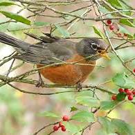 Our neighbor has a huge holly tree (bush). It must be 40 feet high. Yesterday, I saw a large flock of birds descend on the tree. There were dozens and dozens of robins pecking at the berries.