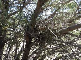 The twig that mockingbird ultimately decided on may have had some resin or stickiness which he used to hold the nest together. Mockingbirds typically build nests in a dense shrub or tree, some 3-10 ft above the ground. Their nests have a bulky foundation of twigs supporting an open cup of weeds, grass, leaves, lined with fine material such as rootlets, moss, animal hair, and plant down. The male builds most of the foundation, and the female adds most of the lining.