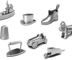Remember the original tokens? The cannon, battleship, thimble, iron, top hat, and the car? Who knows why, but Parker Brothers decided to change the tokens. First. they added a cat to replace the iron. Next, the boot, thimble and wheelbarrow got the axe, replaced by a dinosaur, a rubber duck and a penguin.