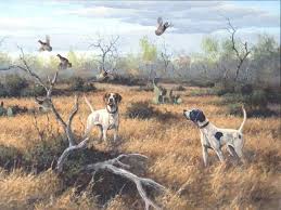 About 4:30 that afternoon, the dogs began acting “birdy”, pointing and trailing, pointing and trailing until they locked on point when we reached a ditch. A big covey erupted from the brush and flew in every direction. One went my way, I turned and fired and it began to fall. I knew I had it hit, but I didn’t see it drop. Daddy did, however, and led the dogs to that spot. Rebel found it, a plump bobwhite and I had killed it by myself. I have never been so excited.
