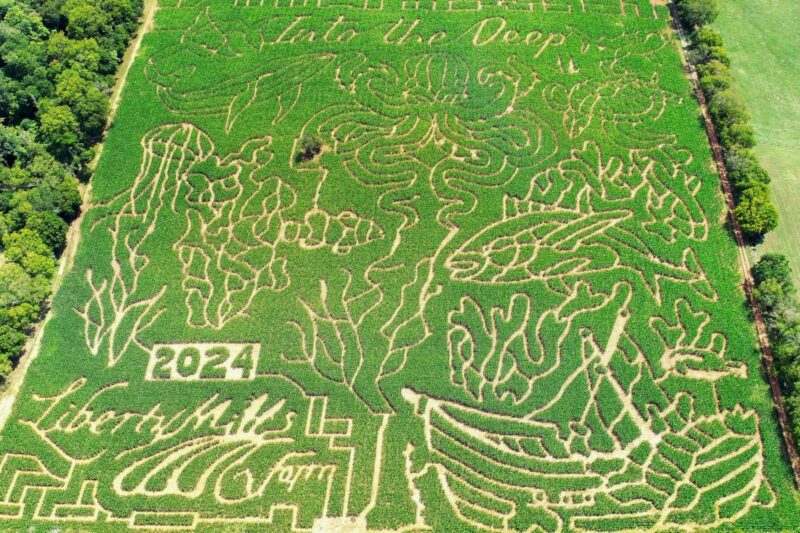 Kent and Evie Woods have opened their Liberty Mills Farm in Somerset to all those who might want to wander through a corn maze. This year’s 34-acre maze theme is “Into the Deep”. There are three different mazes – easy, middle, and you-might-not-ever-get-out. Pick your poison.
