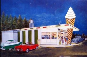 They also serve slow food. Not fast food, though their sign says so, but it’s slow food because if you order a burger, it takes a while. They make everything to order and cook on a well-seasoned grill. They’ve been in business since way back in the 60’s, so the grill is very well seasoned. The drive-in is truly a step back in time, one of the last of the old food and ice cream operations.