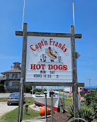 Capt’n Franks is in Kitty Hawk around milepost 4.5 on Croatan Highway. They have inside and outside seating, but we always grab one of the picnic benches outdoors and feast there on our dogs and fries.