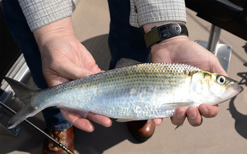 The hickory (or silver) shad is affectionately known as the “poor man’s tarpon.” With its superior (or upturned) mouth and protruding lower jaw, it looks a lot like the famous saltwater fish. Hickories are also known to do aerial acrobatics once hooked—once again like the famous tail-walking tarpon.