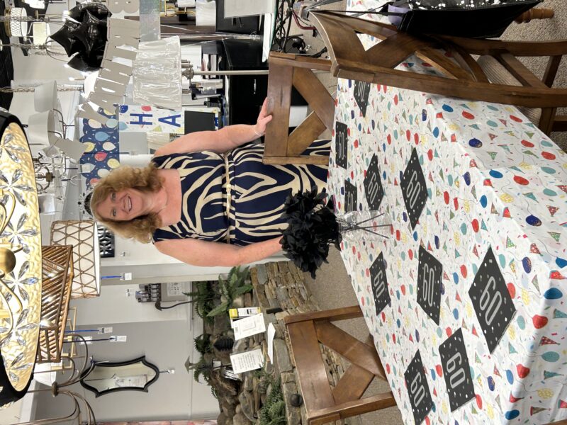 Celebrating one of our own was so fun. Sherri Perri, our Lighting Showroom Manager has been with Nancy B’s for years and has just had a very special birthday. She turned the big Six-O, but looks 40, if that.