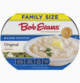 Bob Evans, of course, is a restaurant chain based in Ohio with over 430 locations nationwide. They compete with folks like Cracker Barrel and Denny’s for home-style cooked meals. One of the Bob Evan’s specialties is their mashed potatoes, and they also offer them in most supermarkets in the convenient food sections.
