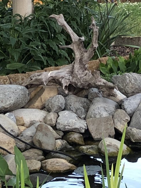 If you can’t go to the Outer Banks, bring the Outer Banks to you. That’s what we did a few years back. After a great four-day getaway, we stopped by Outer Banks Driftwood in Kill Devil Hills on our way back home and bought three pieces of beautiful driftwood. One is now overlooking our goldfish pond. It’s a classic cypress stump that washed up on shores of the Outer Banks, no telling how many years ago. I turned another piece into a light fixture and the third will make a nice driftwood canvas for a painting – maybe some oysters or a trout or seashells. I’m still thinking about it.