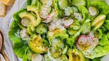 This spring as I was buying some young collard plants for my garden, I saw a six pack of small butter lettuce plants. I put them in the ground and one month later, I am reaping the rewards. I made a delicious Butter Salad with all the bells and whistles – olives, avocado, radishes, grapes, hard boiled eggs, and grated parmesan topped off with a Raspberry Vinaigrette Dressing.