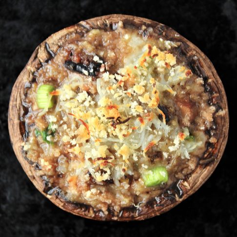 I warmed the concoction and set it aside. Next, I drizzled a little olive oil in the mushroom cavities, divided the crab into four parts, stuffed the portabellas and cooked them in a 350 oven for 25 minutes – garnished with lemon slices. Some put cheese with crabmeat, but I like it plain.