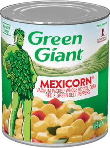 Start with a can of Green Giant Mexicorn. It has spices and peppers mixed with the Niblett’s corn. It’s already cooked so open the can and put it in a bowl.