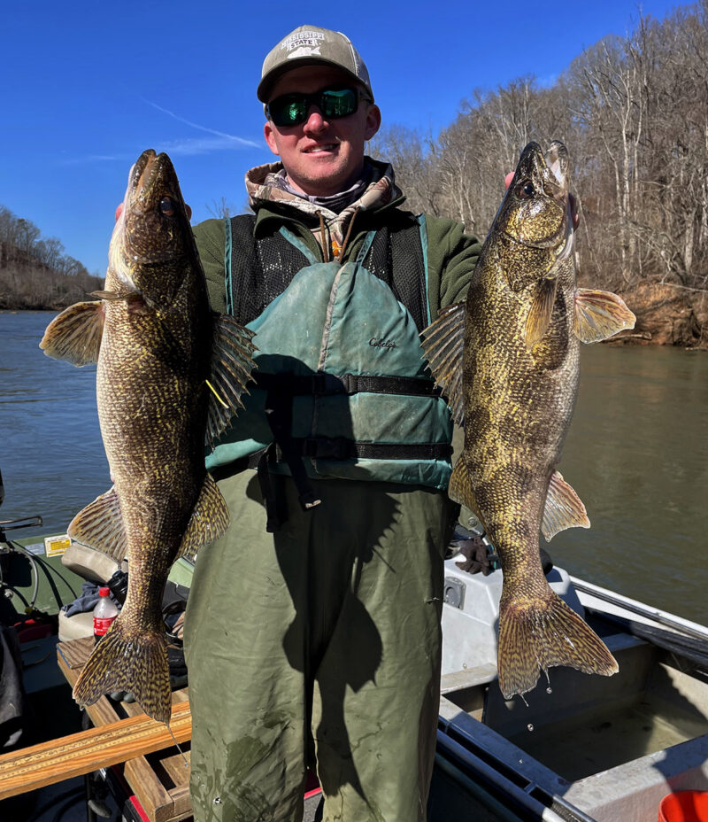 A saugeye is a cross between a sauger and a walleye. The fingerlings from West Virginia hatcheries were first introduced in Virginia waters in 2013, and they are doing very well in a number of Virgina lakes and rivers. In fact, saugeyes outperformed walleyes in many locations and are now firmly established in several lakes and rivers across the state. Saugeyes in Virginia are managed like walleye, and are treated as walleye in the regulatory process. Saugeyes have added to Virginia winter fishing possibilities as they tend to congregate in February and feed in the coldest conditions.