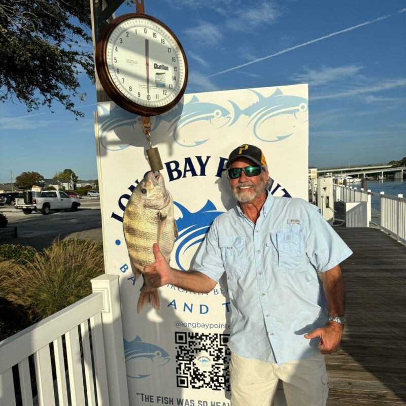 A sheepshead can be one of the most difficult fish to catch. They are very picky about their baits and have an affinity for fiddler crabs. Their bite is very light as they snuggle up to pilings and structure. But they are one of the best easting fish in saltwater. The angler pictured above is certainly in for some fine dining with a citation 10-pounder. The sheeps will hang around for a few more weeks until the bay temperatures drop further, as they are beginning to do now.