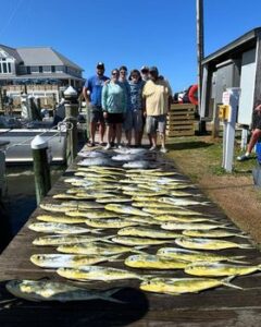 Boats out of Oregon Inlet and Pirates Cove are pounding the Mahi on each trip. Also in the mix are yellowfin bluefin and bigeye tunas. A few wahoo have been gaffed and blue marlin and sailfish action is picking up steam. Nearshore and inshore boats are loading up on bluefish, Spanish mackerel, albacore, and sharks. The speckled trout and puppy drum bites are hot in the sound.