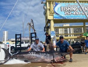 A 597-pound swordfish, caught September 25, 2020 by Nicholas Kontodiakos of Norfolk, has been certified as the new Virginia State Record by the Virginia Saltwater Fishing Tournament. Kontodiakos’ catch crushes the existing record of 466-pounds, caught on August 16, 2019, by Tony Gower Jr. of Virginia Beach, VA.