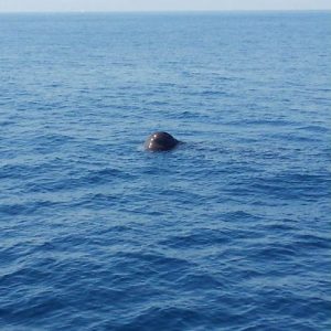The Tuna Duck set sail out of Hatteras this Wednesday, hoping to find some bluefin tuna. No luck with the tuna, unfortunately, but the boat did happen upon a whale taking a nap in the ocean’s surface. That’s where they sleep, you know. Whales breathe air and they sleep in the surface – and so it was for this tired mammal.