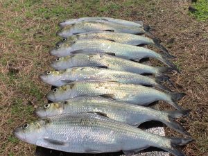 Great fishing last Saturday on the Roanoke River in Bertie County, NC. We caught 4 herring for every Hickory Shad (we had to throw the herring back). We ended up with 9 roe shad and some males! Later, we found a man selling S.C. herring, so we bought some of those. We had a great discussion on fishing regulations and their non-conservation repercussions (many of the herring you must not keep in NC end up dead within an hour). Back with relatives in their home in Edenton, NC, we had a fine Eastern North Carolina fish fry with baked shad roe, fried herring and shad, boiled potatoes and green beans with side meat plus lots of sweet, iced tea!