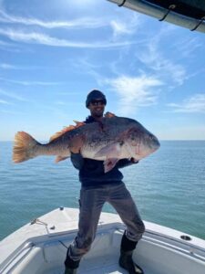 One of the first signs of spring – fishing-wise – is the arrival of the big black drum, and they have arrived. Anglers are starting to find black drum along the Eastern Shore. Long Bay Pointe Bait & Tackle registered their first black drum citation on March 30th. The 52-inch citation (shown above) was caught and released near Fisherman’s Island by Jonathan Hughes. Look for them to show up next near the Concrete Ships, the Cabbage Patch and some of the favored striper haunts like the 36A Buoy and the High Rise off the Chesapeake Bay Bridge Tunnel. Surf anglers are finding the drum in the surf on the Barrier Islands.