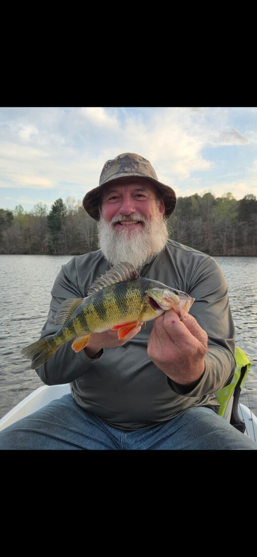 Yellow perch, sometimes called ring perch, are cousins of walleye – considered the finest eating of all freshwater fish. They are also a preferred food source for walleye and that’s probably the reason they are now well-established in Lake Orange. Someone that liked to fish for walleye brought them to the lake. When the Game Department found out that perch were in their lake illegally (the Department owns and manages Lake Orange) they made every attempt to get rid of them because they compete with crappie and crappie were a prized fish in the lake. When the Department biologists electro-shocked, they tossed the perch up on the bank. I was with them once on such an expedition and as they were going to throw a shocked perch on the shore, I asked if I could have it (a fat 10-incher) and they said, “Sure, take all you want.”