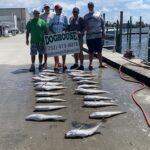 All summer, boats venturing out in deeper water have returned to the docks with nice Blue Line Tilefish. These colorful bottom dwellers hang out in deep water, really deep water, like 250 feet and more. They hang in the same kind of habitat with groupers and snappers and prefer sandy bottoms. James Friend Dickerson and buddies chartered The Doghouse out of Manteo last week and caught … [Read more...]