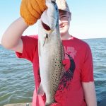 There has been some of the most spectacular speckled trout fishing in recent memory on the Outer Banks at Oregon Inlet. Acres and acres of vast grass beds draw bait like shrimp, crabs and mullet and the trout have moved in to take advantage. Capt. Reese Stecher of Beach Bum Fishing continues to put his clients on trout, with near daily limits and some nice fish, as well. “It’s still great, as … [Read more...]