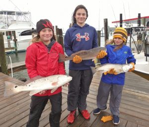 From Nags Head, Capt. Reese Stecher reports: “The Stripers gave us the slip for a few days. So, we went after the Drum and they were biting. The cold weathered helped us out and we figured out where the Stripers were last night.”