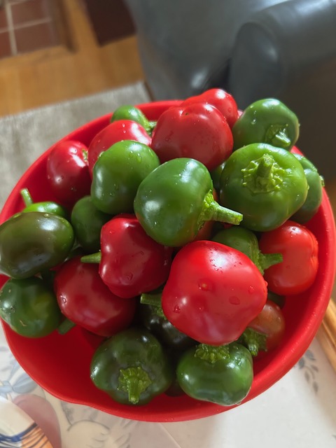 I am not a huge green pepper fan because they tend to overpower and any dish that has them, but the sweet little Door Knobs are very mild and are delicious either pickled or fresh.