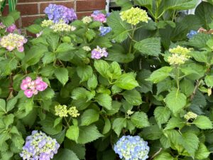 We had a hydrangea bush in the yard when we moved in some fifty years ago. It’s still going strong and is as lovely as ever. This year, the bush is outdoing itself in splendor. As it evolves this year, we have pink, blue, lavender, and mint green colors.